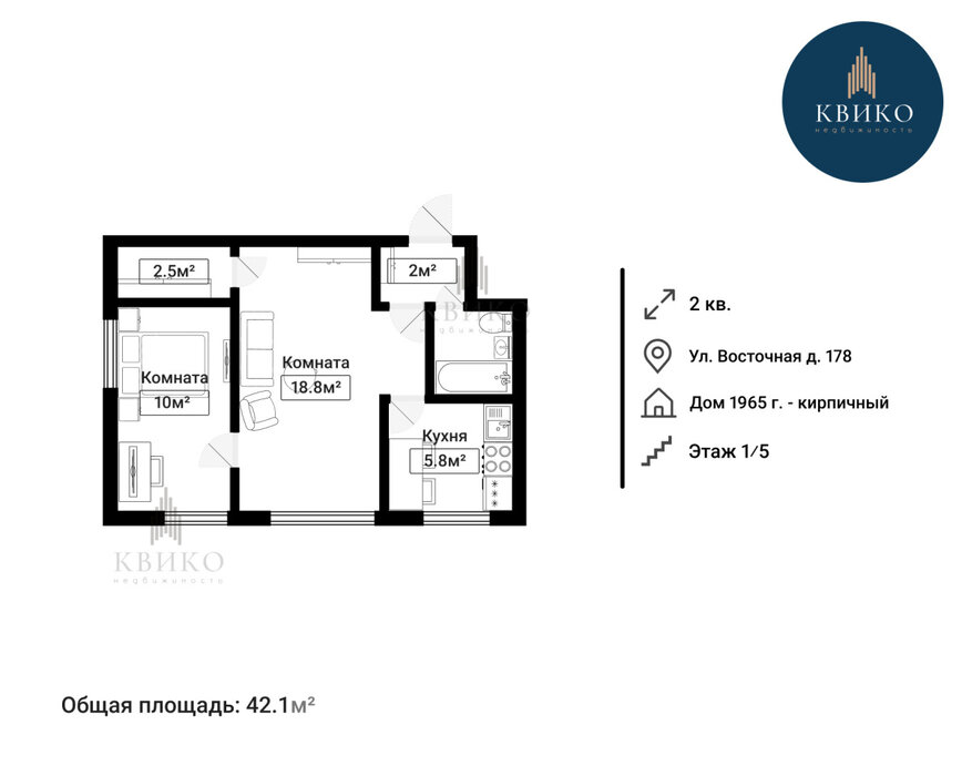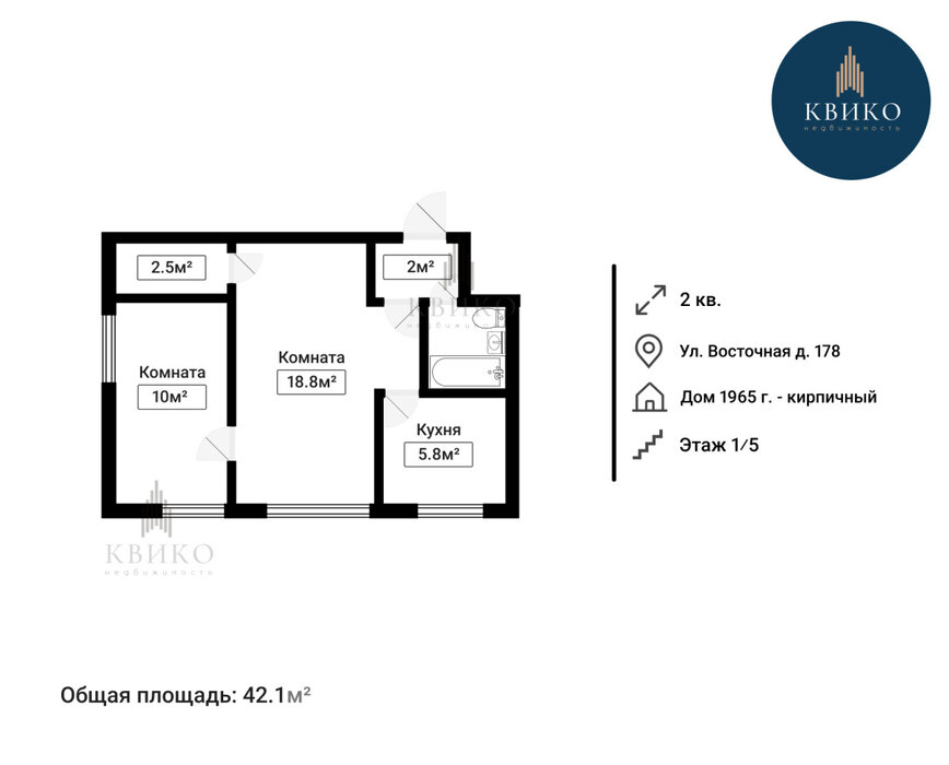 Екатеринбург, ул. Восточная, 178 (Парковый) - фото квартиры 14 февраля 2023 90 дн. 2 42 1/5 4 250 000
