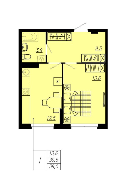 Общая площадь:39.5 м2