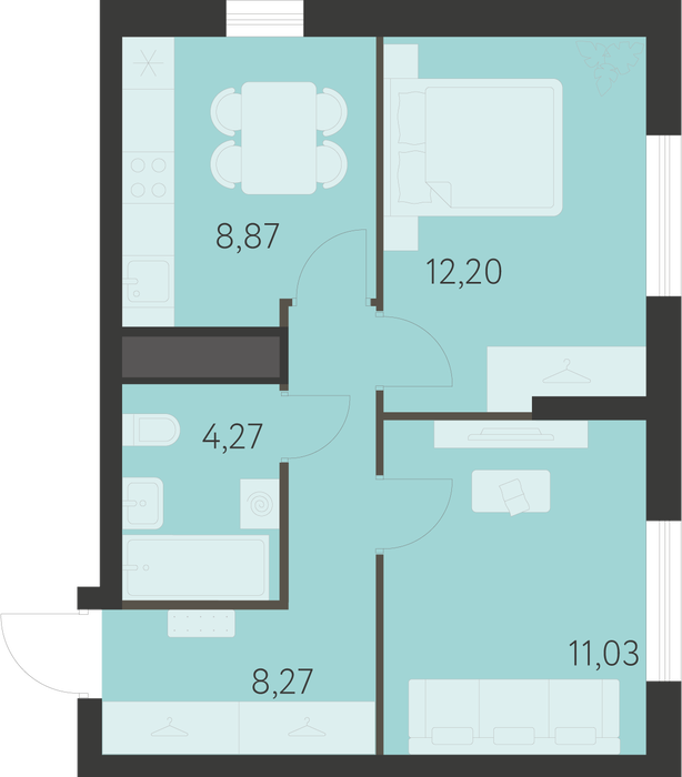 Продается 2-комнатная квартира площадью 44.87 кв.м. от девелопера «Академический» в жилом квартале «Спутник 1». Срок сдачи дома в 2026 году.