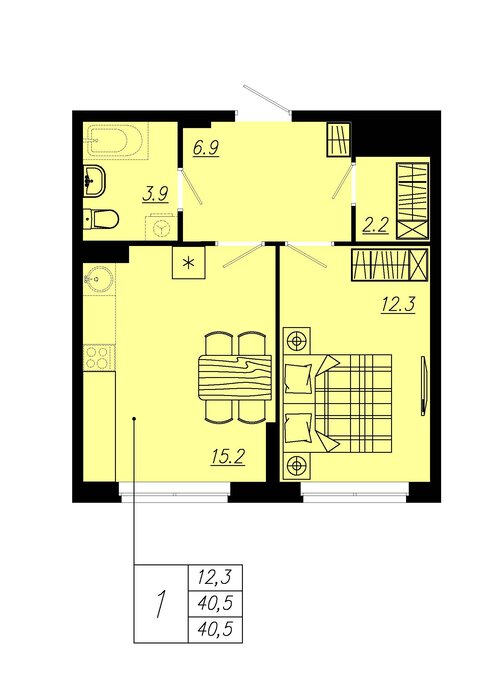Общая площадь:40.5 м2