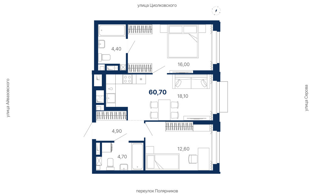 Общая площадь:60.7 м2
