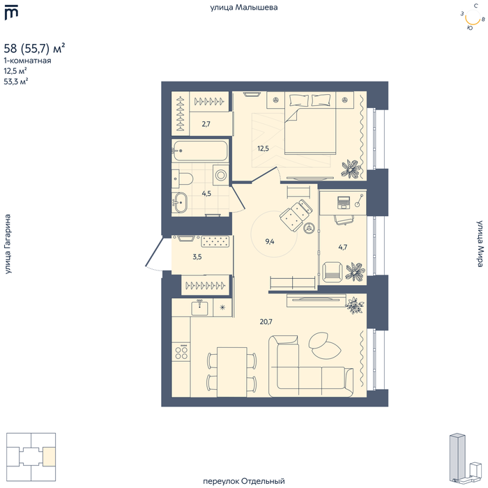 Продажа квартиры: Екатеринбург, ул. переулок Отдельный, 5, ЖК "Отдельный, 5" (Дом)