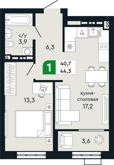 - 1 к.: 37.20 м2 – 4 200 000 ₽