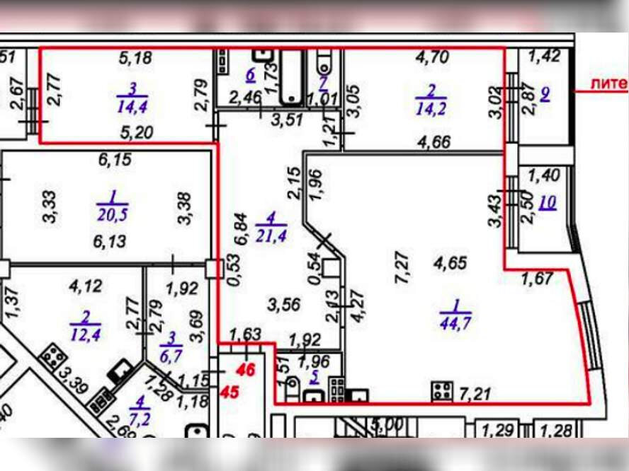 Жилая площадь 74.79 кв. м, кухня 20 кв. м, ремонта нет, комнаты изолированные. Раздельных санузлов - 1, лоджий - 1.
