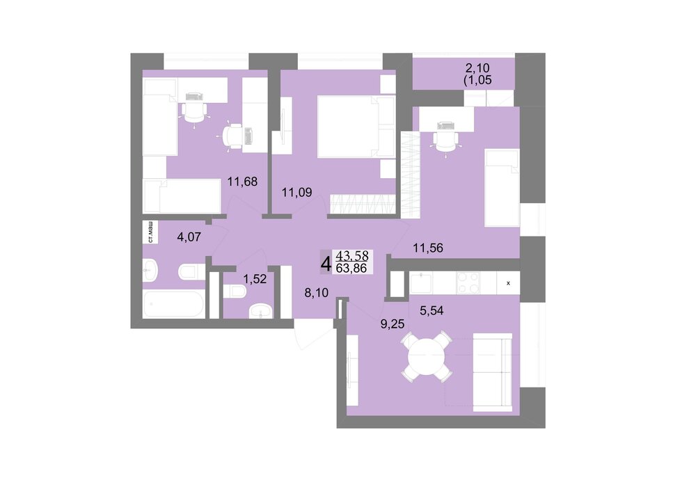 Каждая квартира спроектирована по законам эргономики, планировки имеют правильную геометрическую форму, чтобы вы смогли обустроить свою квартиру, используя каждый квадратный метр функционально и с преимуществом для себя. Кроме того, планировки квартир уже спроектированы с нишей для шкафа или гардеробной, где вы сможете аккуратно организовать зоны для хранения вещей, а также они освободят площади для ваших новых увлечений.
