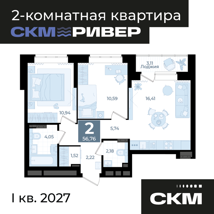 Общая площадь:56.76 м2