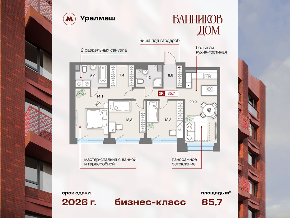 Продажа квартиры: Екатеринбург, Россия, Свердловская область, г. Екатеринбург, ул. Уральских рабочих, 26, ЖК Банников дом (Дом) (Уралмаш)