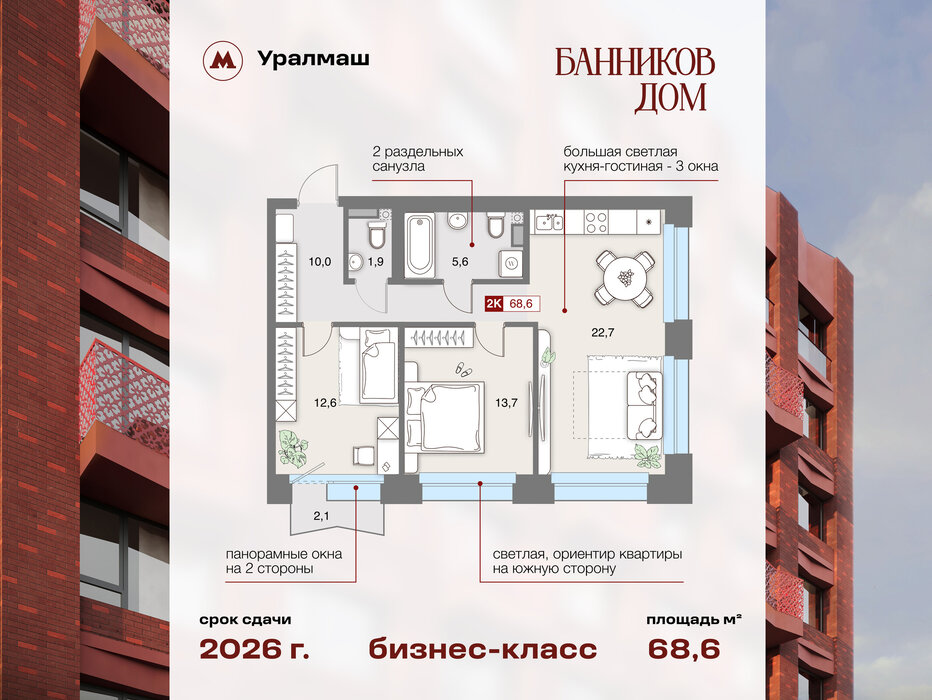 Продажа квартиры: Екатеринбург, Россия, Свердловская область, г. Екатеринбург, ул. Уральских рабочих, 26, ЖК Банников дом (Дом) (Уралмаш)
