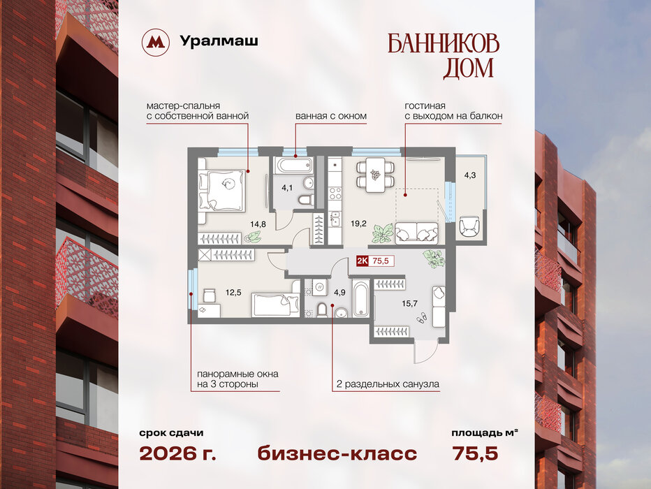 Продажа квартиры: Екатеринбург, Россия, Свердловская область, г. Екатеринбург, ул. Уральских рабочих, 26, ЖК Банников дом (Дом) (Уралмаш)