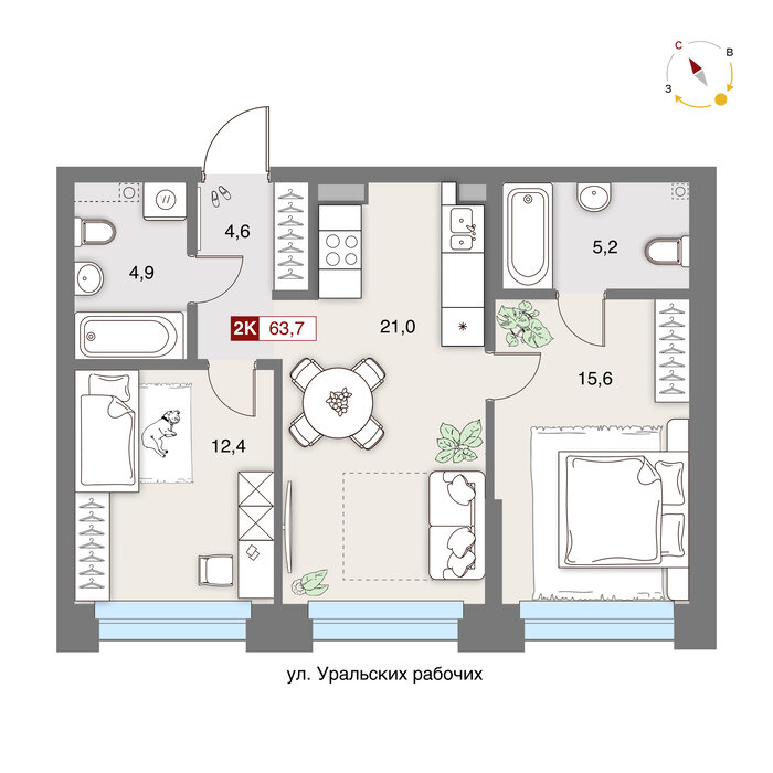 Продажа квартиры: Екатеринбург, Россия, Свердловская область, г. Екатеринбург, ул. Уральских рабочих, 26, ЖК Банников дом (Дом) (Уралмаш)