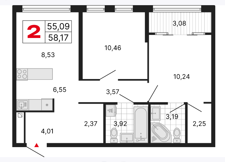 2 вариант: это чистовая отделка без отделки в санузле;