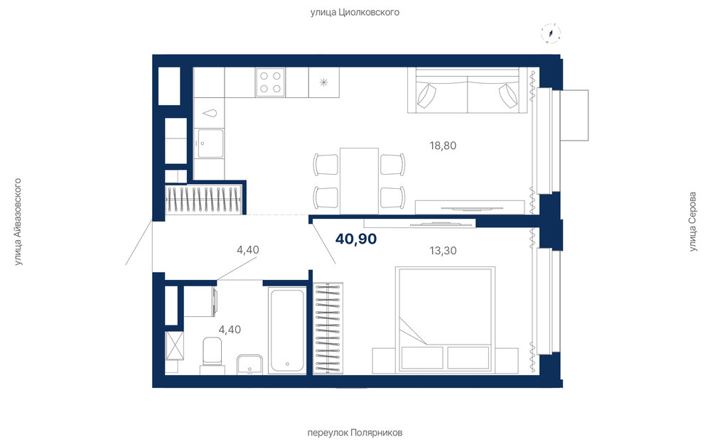 Общая площадь:40.9 м2