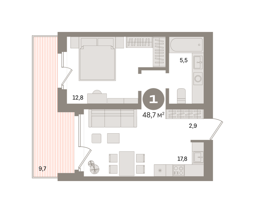 В однокомнатной квартире в «Южных кварталах» спроектированы просторная кухня-гостиная, спальня и ванная комната, предусмотрены ниши для хранения одежды и обуви. Купить однокомнатную квартиру в районе Южного автовокзала в Екатеринбурге выгодно напрямую от застройщика Брусника.