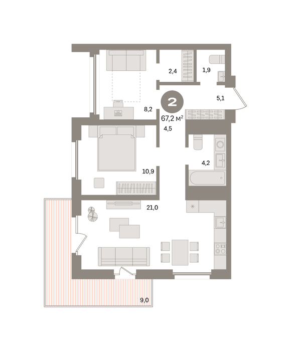 Общая площадь:67 м2