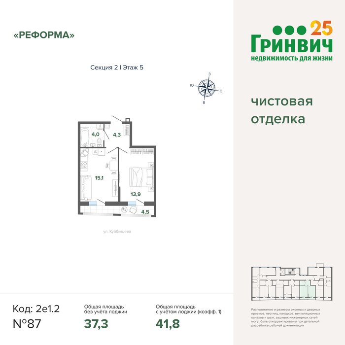 Продается квартира С ОТДЕЛКОЙ в современном жилом квартале «Реформа» – новый жилой комплекс комфорт-класса рядом с парком Маяковского, в 11 минутах от центра города, расположен в квадрате улиц Куйбышева – Комсомольская – Сибирский тракт – переулок Базовый.В продаже 2 дом 1 очереди (три секции по 8 этажей).Срок сдачи – 3 квартал 2025 годаДоступна ипотека 14% для всех!Преимущества квартир:- Эргономичная и функциональная планировка;- Качественная чистовая отделка: входные двери, ламинат, обои под покраску, установлена сантехника;- Горизонтальная разводка систем отопления – свободные стены;- Счетчики на э/э, воду и тепло – ежемесячная экономия на коммунальных платежах;- Сделаны входы для слаботочных сетей (интернет, телефон, цифровое телевидение).Преимущества дома:- Дом находится в тихой зоне, в углублении квартала;- Закрытый от посторонних двор-сад — зелёный оазис с прогулочными аллеями;- 11 минут до центра города на автомобиле;- 5 минут до ЦПКиО им. Маяковского и Шарташского рынка на автомобиле;- Образовательные и спортивные учреждения в пешей доступности;- Развитая инфраструктура рядом;- Ритейлер на первом этаже;- Рядом остановки общественного транспорта с маршрутами в разные районы города.- Для автомобилистов — удобный выезд на ул. Куйбышева, Объездную и ЕКАД.