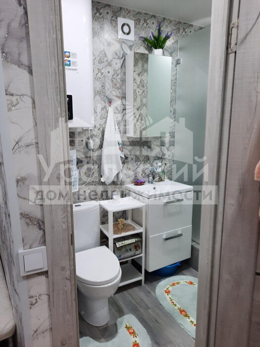 Большой 5 м2 совмещенный санузел в итальянской кафельной плитке. Есть место для стиральной машинки. Установлены душевая кабина, электрический водонагреватель, счетчики холодной и горячей воды.