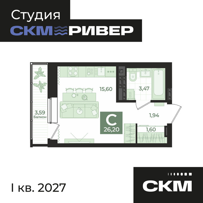 Продажа квартиры: Екатеринбург, ул. Щербакова, 154, корпус Секция 2, ЖК "СКМ Ривер" (Дом)