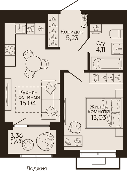 Жилая площадь:13.03 м2