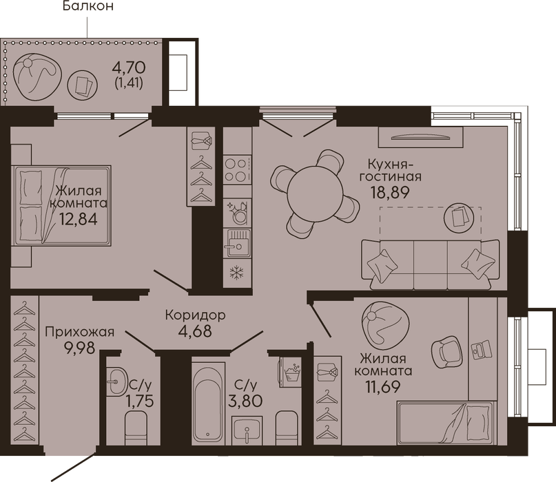 Количество комнат:2