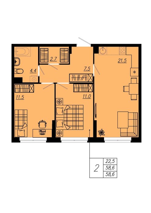 Екатеринбург, ул. Войкова — Фрезеровщиков — Ст.Большевиков — Шефская (Эльмаш) - фото квартиры 9 апреля 2025 90 дн. 2 60.4 1/12 8 639 708