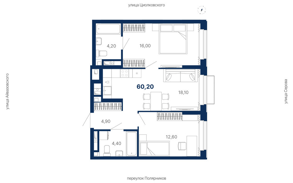 Общая площадь:60.2 м2