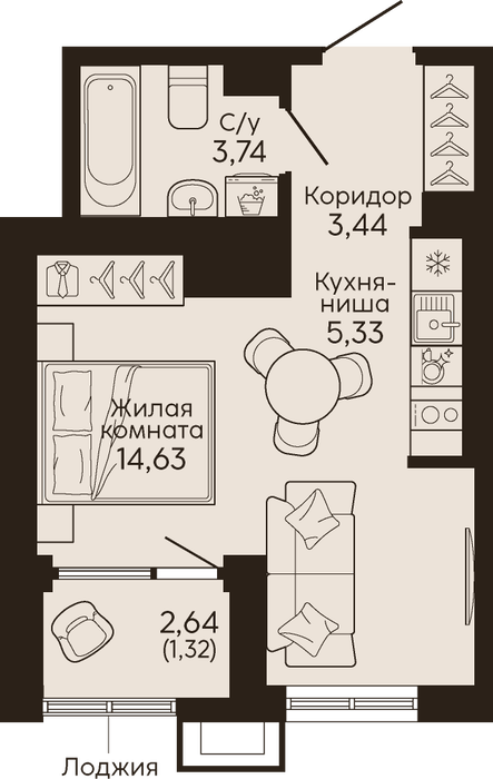 Жилая площадь:14.63 м2