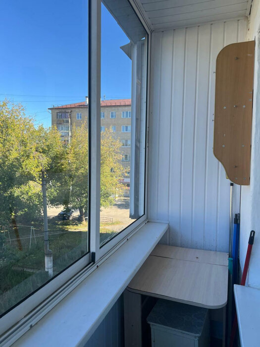 Балкон и окна кухни выходят в тихий двор. Балкон не застеклен.