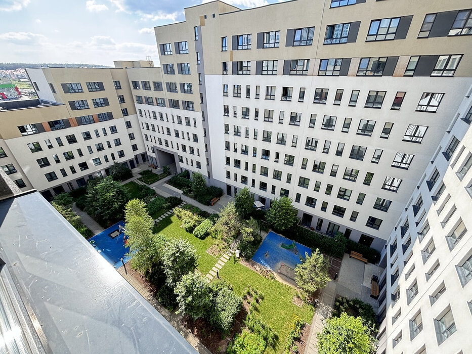 Территория двора закрытая, озелененная, без машин. Есть детские и спортивные площадки. Большим плюсом является близость к лесу, аналогия загородной жизни в городских условиях. Жителям комплекса очень нравятся прогулки по лесу. Также совсем рядом находится Парк Мичуринский, в котором приятно прогуляться. С парковочными местами проблем нет - они расположены вдоль всей территории комплекса и также есть возможность аренды места в многоуровневом паркинге.