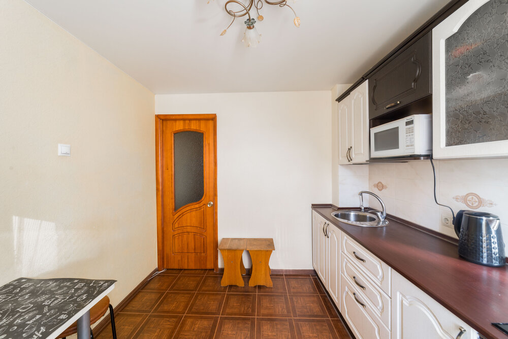 Отделка: обои, потолок под покраску, линолеум/ламинат, ванная и туалет отделаны керамической плиткой. Установлены счетчики на горячую и холодную воду. Мебель готовы оставить по договоренности.