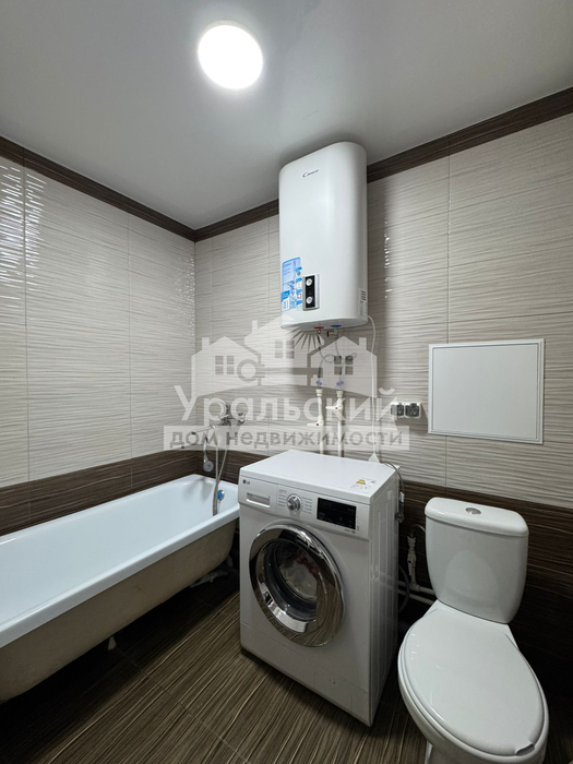 Большой 5 м2 совмещенный санузел в итальянской кафельной плитке. Есть место для стиральной машинки. Установлены душевая кабина, электрический водонагреватель, счетчики холодной и горячей воды.