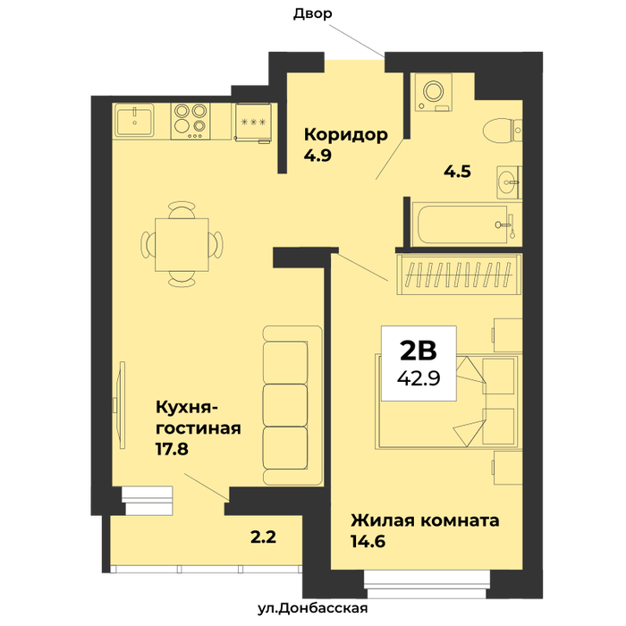 Екатеринбург, ул. Донбасская, 21 - фото квартиры 7 ноября 2025 90 дн. 1 41.3 14/25 6 608 000