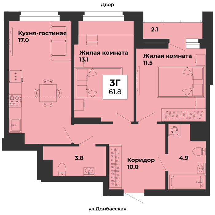 Екатеринбург, ул. Донбасская, 21 - фото квартиры 16 ноября 2025 90 дн. 1 42 6/25 6 636 000