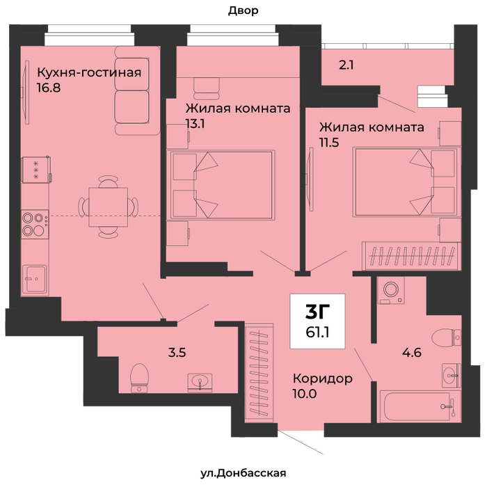 Екатеринбург, ул. Донбасская, 21 - фото квартиры 16 ноября 2025 90 дн. 1 42 6/25 6 636 000