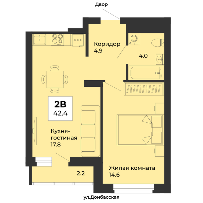 Екатеринбург, ул. Донбасская, 21 - фото квартиры 16 ноября 2025 90 дн. 1 42 6/25 6 636 000