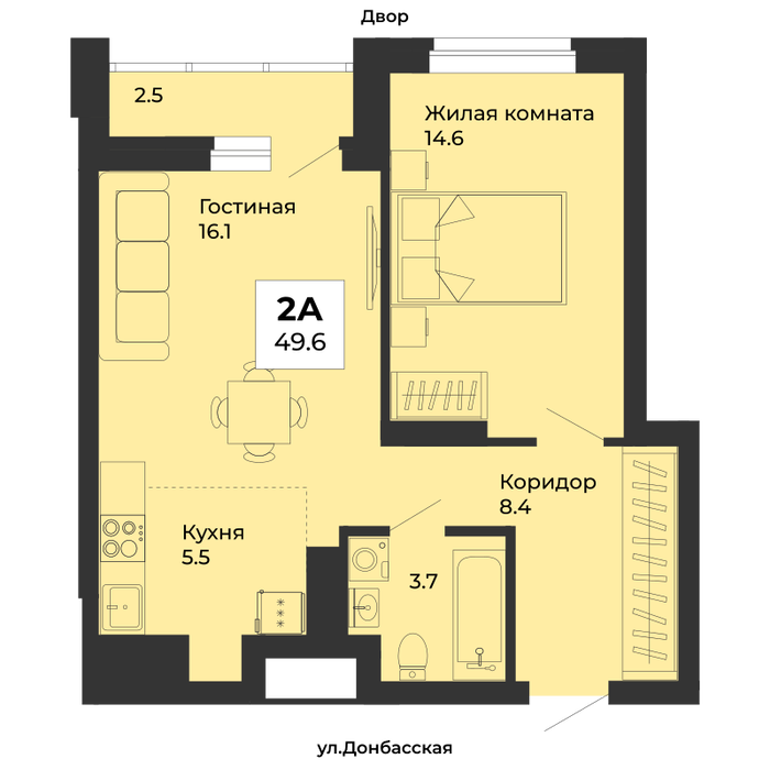 • 1-к квартира, Донбасская, 21