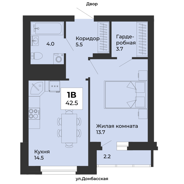 Общая площадь:42.5 м2
