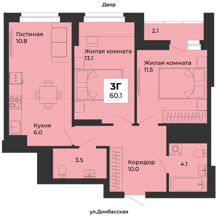 Екатеринбург, ул. Донбасская, 21 - фото квартиры 16 ноября 2025 90 дн. 1 42 6/25 6 636 000