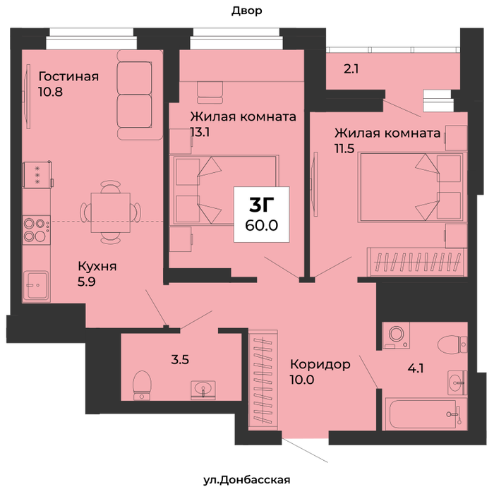 Екатеринбург, ул. Донбасская, 21 - фото квартиры 16 ноября 2025 90 дн. 1 42 6/25 6 636 000