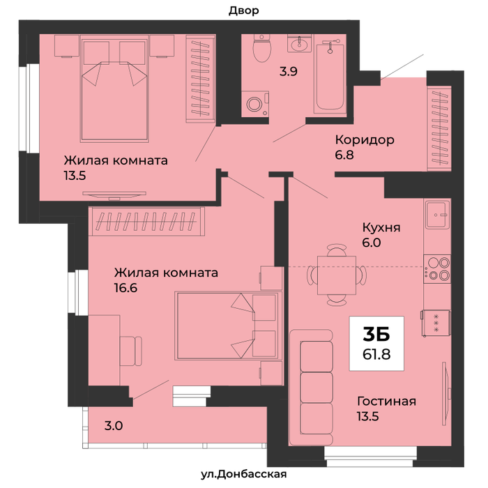 Екатеринбург, ул. Донбасская, 21 - фото квартиры 16 ноября 2025 90 дн. 1 42 6/25 6 636 000