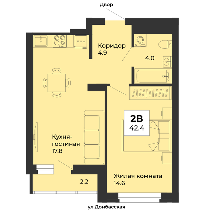 Екатеринбург, ул. Донбасская, 21 - фото квартиры 7 ноября 2025 90 дн. 1 41.3 14/25 6 608 000