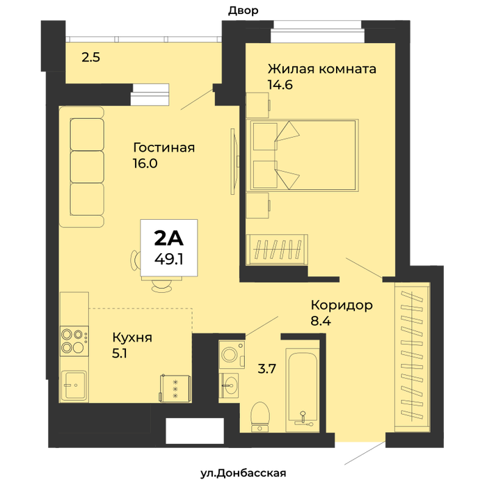 Екатеринбург, ул. Донбасская, 21 - фото квартиры 30 октября 2025 90 дн. 2 46.7 7/25 7 378 600