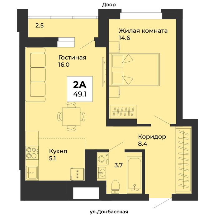 Екатеринбург, ул. Донбасская, 21 - фото квартиры 30 октября 2025 90 дн. 2 46.7 7/25 7 378 600