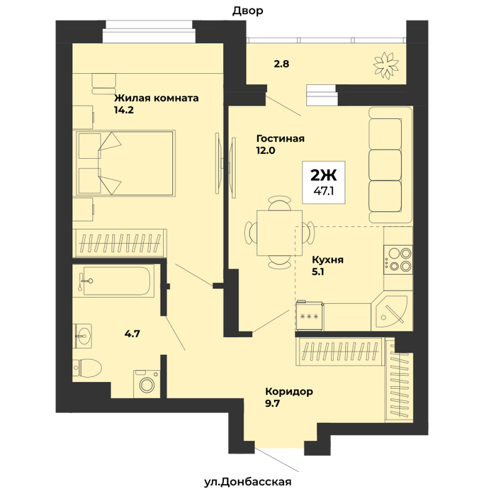 Екатеринбург, ул. Донбасская, 21 - фото квартиры 30 октября 2025 90 дн. 2 46.7 7/25 7 378 600