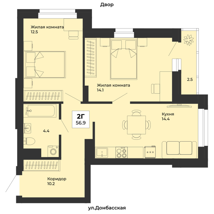 Екатеринбург, ул. Донбасская, 21 - фото квартиры 30 октября 2025 90 дн. 1 40.9 14/25 6 666 700