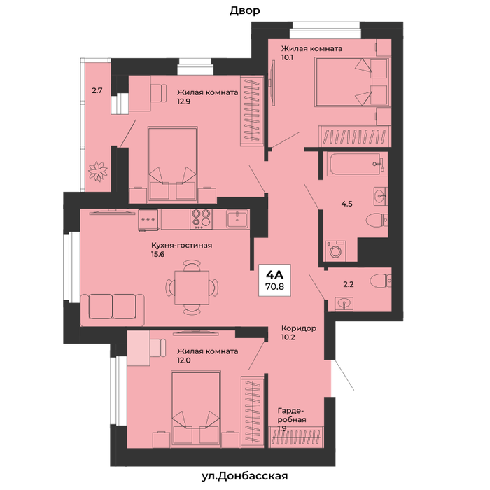 Екатеринбург, ул. Донбасская, 21 - фото квартиры 16 ноября 2025 90 дн. 1 42 6/25 6 636 000