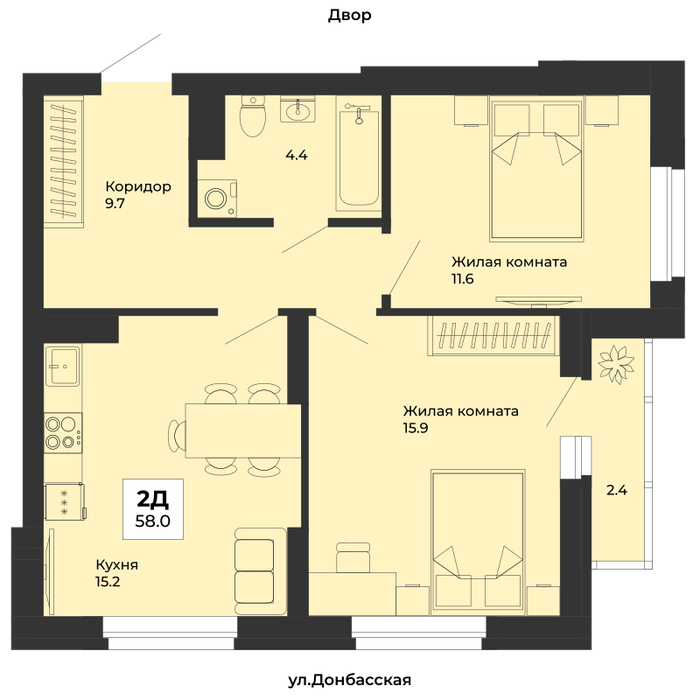 Екатеринбург, ул. Донбасская, 21 - фото квартиры 16 ноября 2025 90 дн. 1 42 6/25 6 636 000