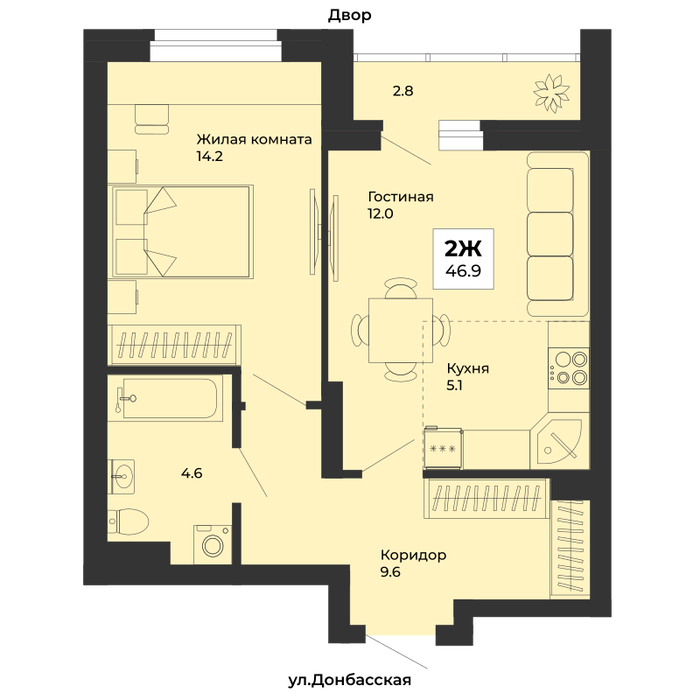 Екатеринбург, ул. Донбасская, 21 - фото квартиры 30 октября 2025 90 дн. 2 46.7 7/25 7 378 600