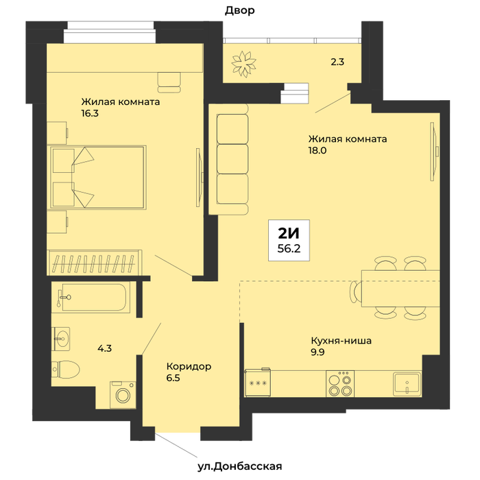 • 1-к квартира, Донбасская, 21