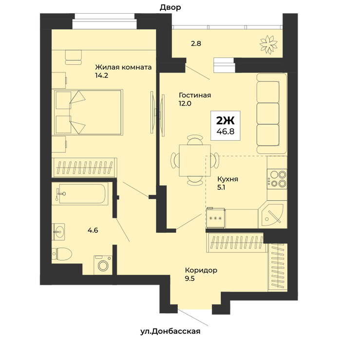 Екатеринбург, ул. Донбасская, 21 - фото квартиры 30 октября 2025 90 дн. 2 46.7 7/25 7 378 600