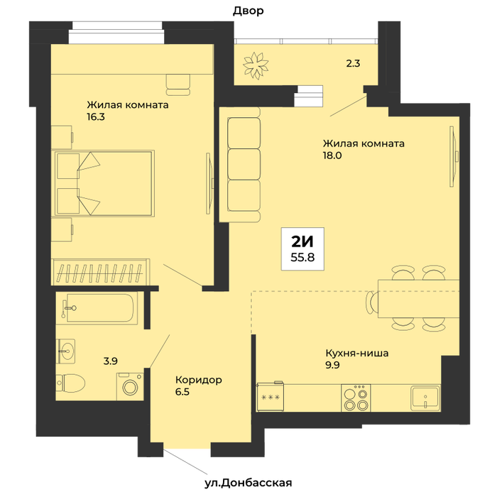 Екатеринбург, ул. Донбасская, 21 - фото квартиры 16 ноября 2025 90 дн. 1 42 6/25 6 636 000